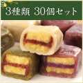 白(小豆あん)×10個、紫芋×10個、よもぎ×10個