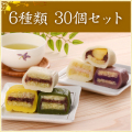 熊本の人気特産品「いきなり団子」専門店【肥後屋】の全てのいきなり団子が楽しめる、いきなり団子 白(小豆あん)×5個、いきなり団子 白(白粒あん)×5個、いきなり団子よもぎ×5個、いきなり団子紫芋×5個、いきなり団子くり×5個、いきなり団子くるみ×5個の合計30個入りセット商品です。