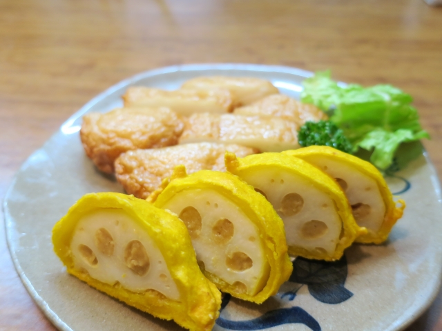 そこで、藩の賄方であった平五郎が、味噌と和からしを混ぜ合わせたものを蓮根の穴に詰め、小麦粉、空豆粉、卵の黄身の衣をつけて油で揚げたものを忠利公に献上しました。
