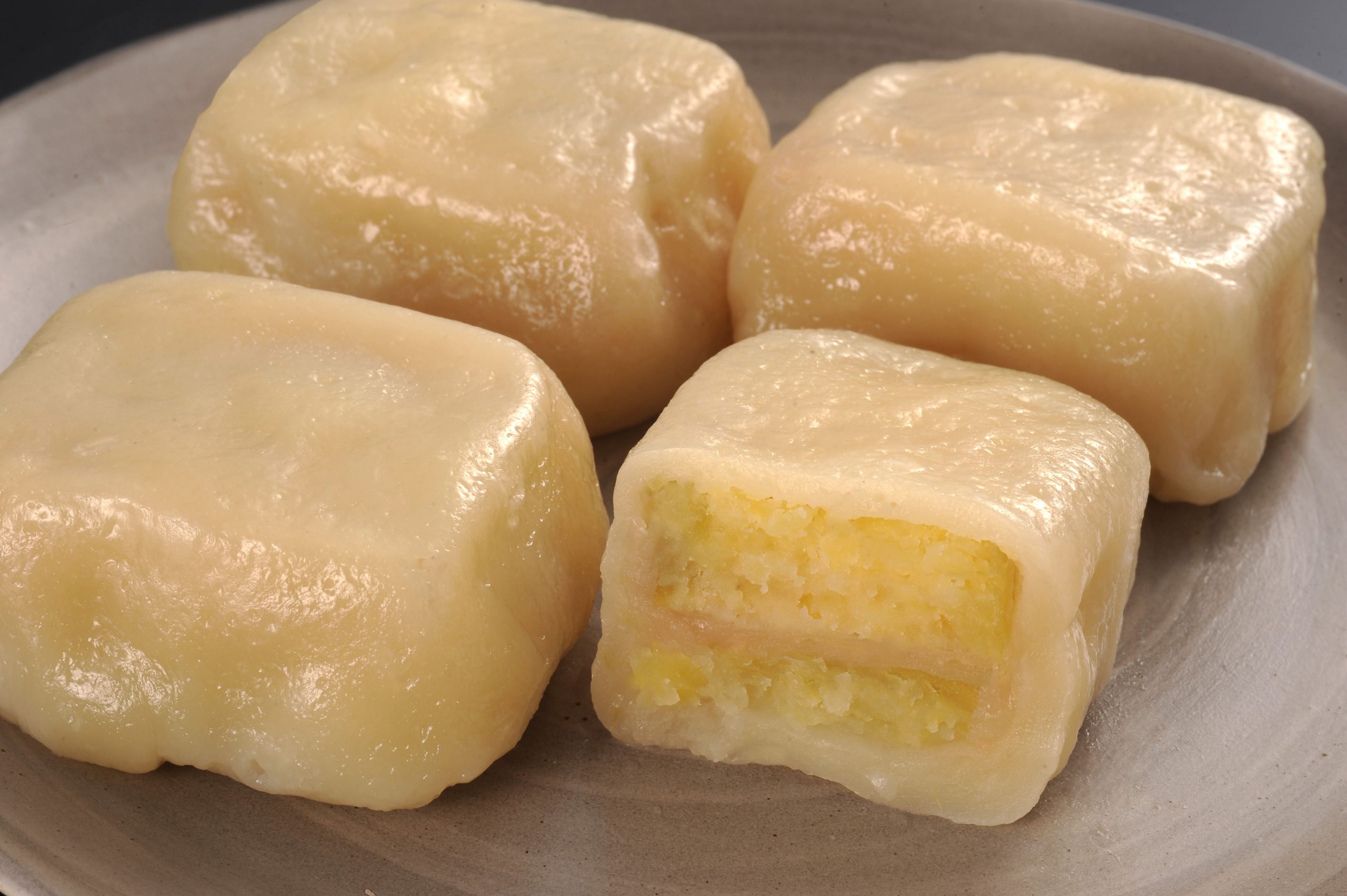 りんご餡をさつまいもで挟み、白生地で包んだ見た目はあくまでシンプル。